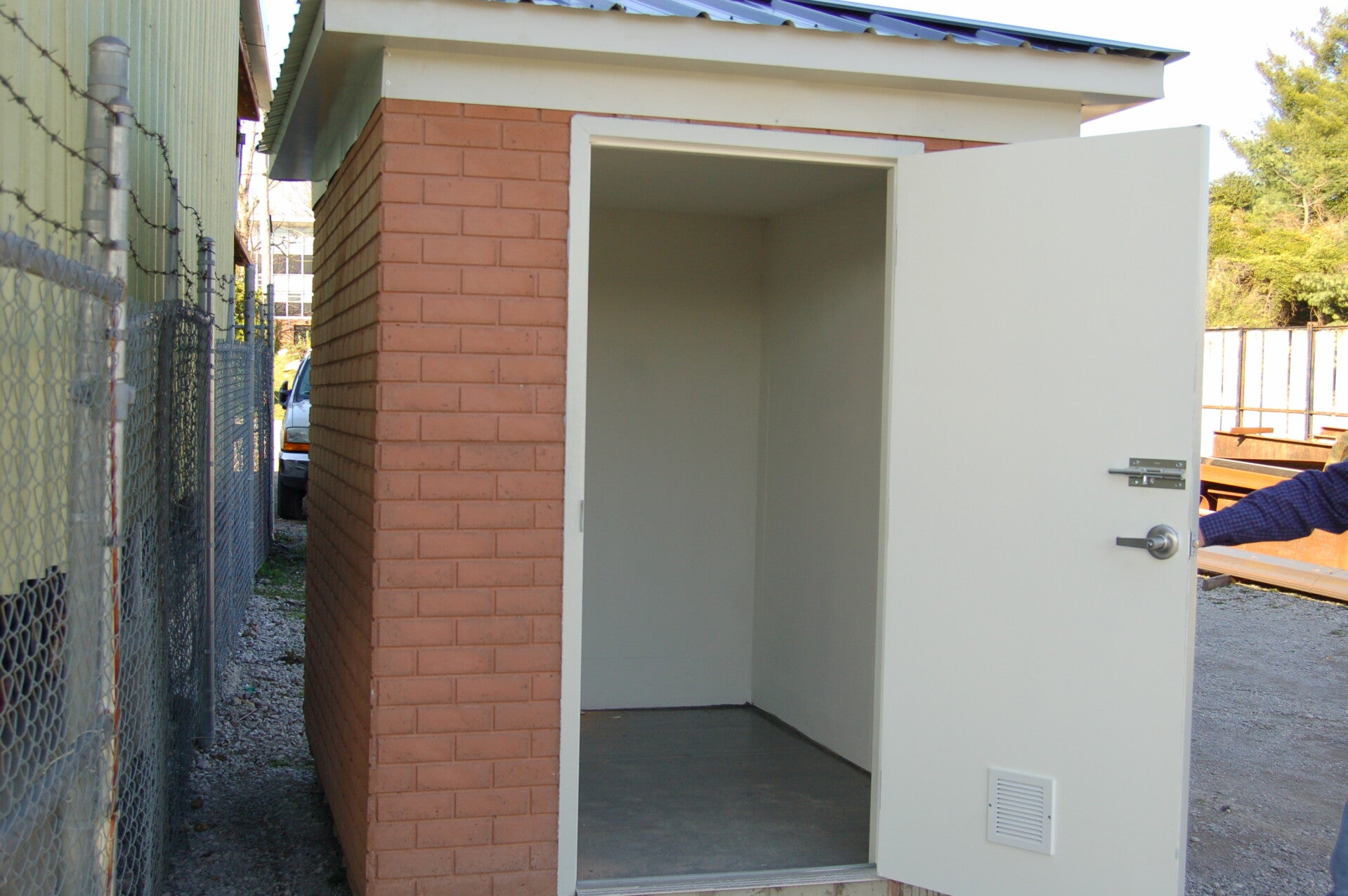 Our storm shelters are spacious and designed to avoid claustrophobia. Each shelter features a durable double-locking steel door for enhanced security.